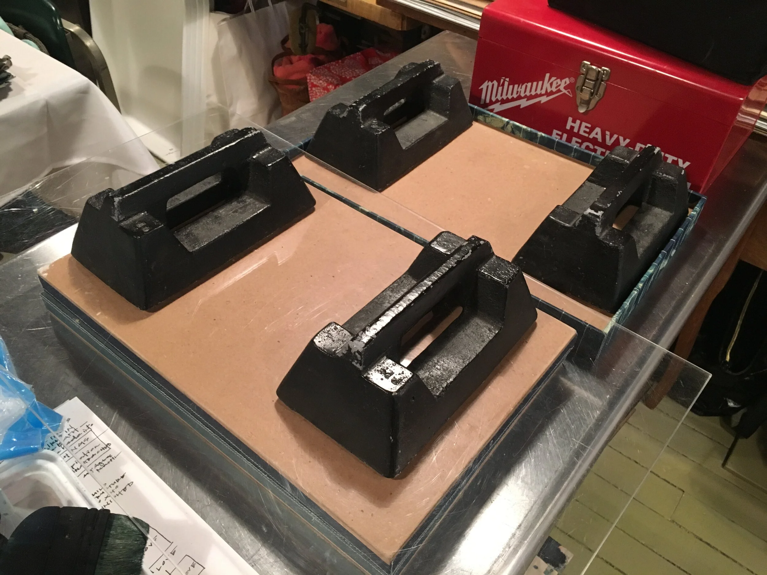 The first batch of weights were cast with the assistance of the iron foundry group Iron Corps.